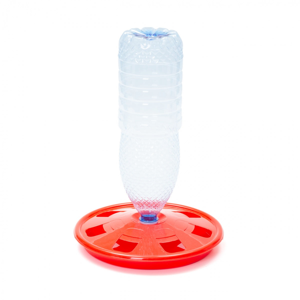 Este confecționată din plastic rezistent, fiind compusă din două părți care se îmbină ușor prin presare. Dispune de 7 găuri de adăpare, permițând acces simultan mai multor păsări. Se poate utiliza cu mai multe tipuri de flacoane PET, în funcție de necesarul de apă.