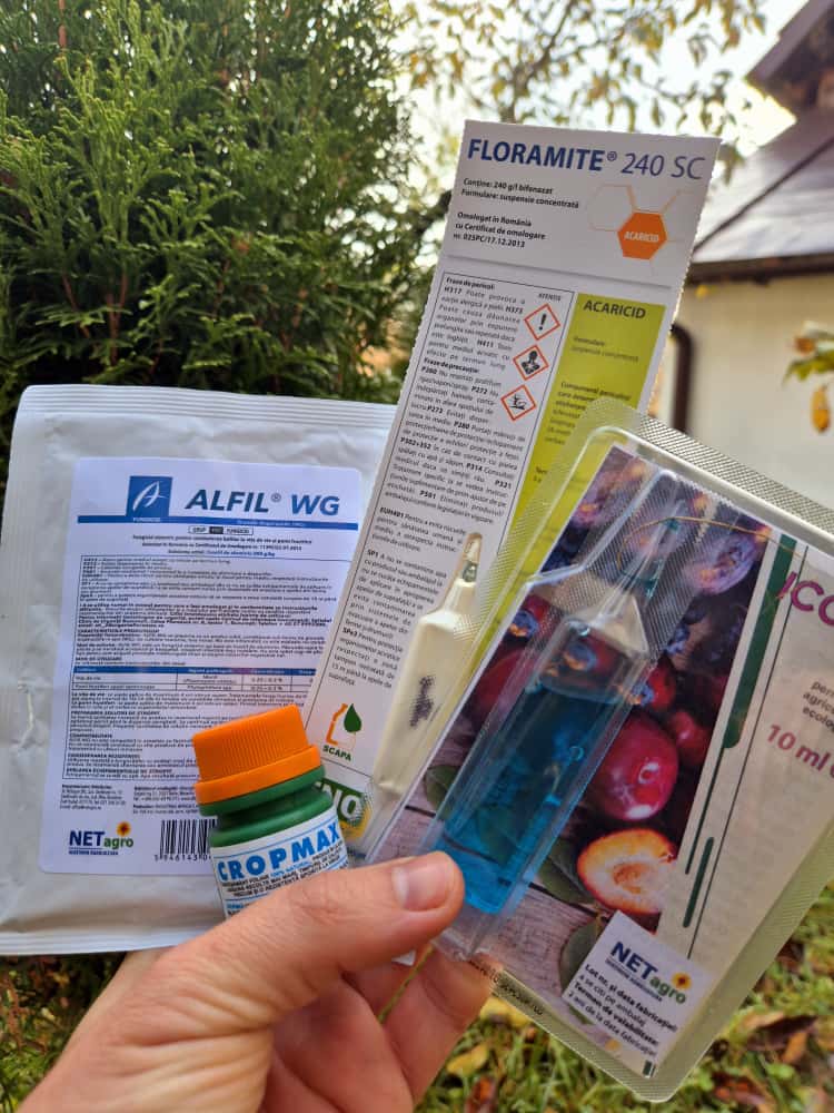 Acaricid – acțiune rapidă împotriva păianjenilor și insectelor care provoacă îngălbenirea și uscarea frunzelor;