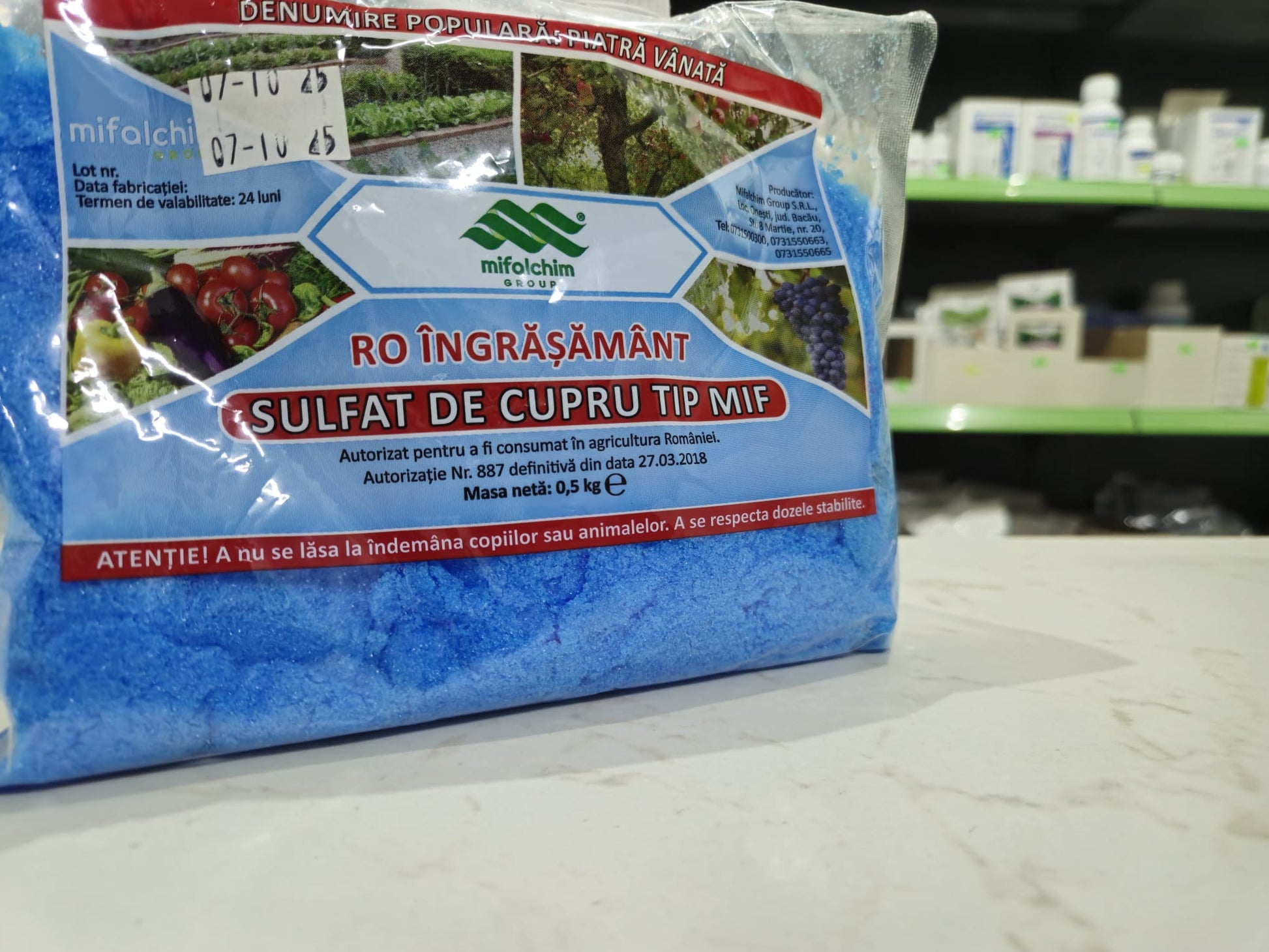 | Viță-de-vie | Mana viței-de-vie (Plasmopara viticola) | 0,5–1% | 50–100 g / 10 L apă |